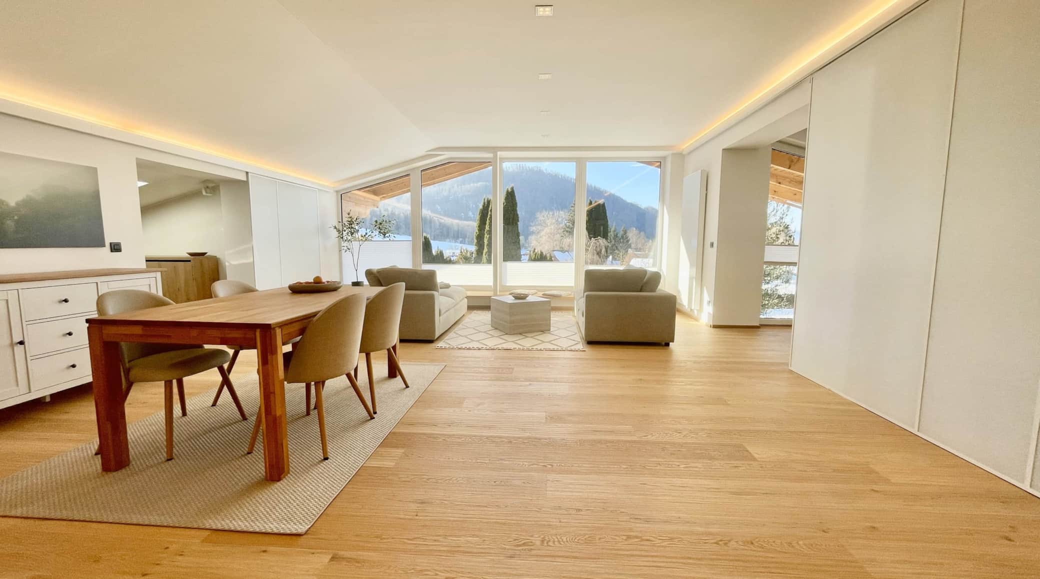 Ihrem stilvollen Rückzugsort im Herzen des Salzkammerguts. In ruhiger Lage von Bad Ischl verbindet unser modernes Loft zeitloses Design mit alpinem Charme und viel natürlichem Licht. Große Fensterflächen eröffnen einen traumhaften Blick auf die umliegende Berglandschaft und schaffen eine helle, entspannte Atmosphäre zum Ankommen und Durchatmen.